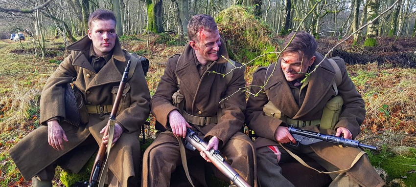 The location was almost a character within its own right, and that added so greatly to the experience. It really was as cold, wet and muddy as it looks (I almost lost a boot at one point!), the costumes and props were exceptionally authentic and thus weighed us down as real soldiers of the time would have been-all of that sounds terrible, but honestly it made filming so immersive that it was a joy for an actor to be involved with. We did our own stunts, and having never worked with explosives, it was a hugely exciting (and, at times, slightly scary) experience. Both Kevin and I were a little shaky after our very first experience of being nearly blown up…